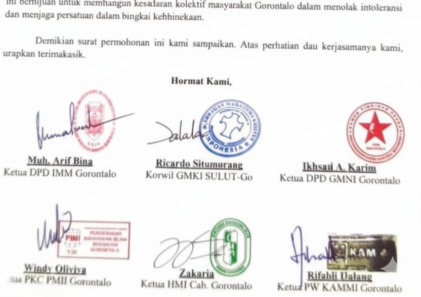 Berdasarkan dokumen yang diterima, diketahui bahwa proposal tersebut diajukan dengan mencantumkan nama HMI Cabang Gorontalo sebagai salah satu unsur dalam aliansi Cipayung Plus bersama PKC PMII, DPD IMM, GMKI, dan GMNI.